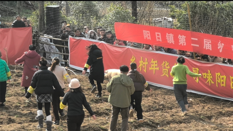 作为本次活动的亮点,传统祭年猪仪式庄重举行,寄托了人们对风调雨顺、五谷丰登的美好祝愿。现场还同步开展了送春联、趣味按年猪、欢乐抓鸡等互动活动及浪漫相亲会,打造了集观演、游玩、消费、体验于一体的综合性乡村文旅场景。